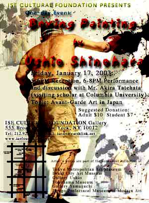 日本の前衛美術の代表者、アーティスト篠原有司男(しのはらうしお)氏によるボクシングペインティングをNYのソーホーにある非営利団体イセファンデーションギャラリースペース内にて開催。