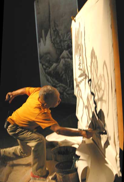 大阪国立国際美術館に於いて、1991年に行われたボクシングペインティング 幅15メートルの大作