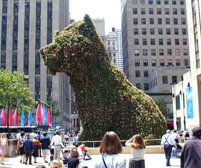 ジェフ・クーンズの大好評である彫刻 パピー (小犬)がオーストラリアのシドニーから運搬され、ロックフェラーセンターで前代未聞の一般公開となる。 ロックフェラーセンターとパブリック ファンドが協力して同展を組織し、このパピーのニューヨークの展示は 5月13日から3週間をかけてインスタレーションを開始され、 グランドオープニングは6月6日。 パピーは2000年9月5日まで公開される予定。