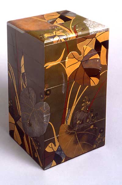 Stacked Food Boxes (jyubako) with Taro Plants and Chrysanthemums