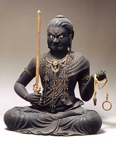 Sculpture : hinoki , color , gold , and kirikane , inlaid with crystal