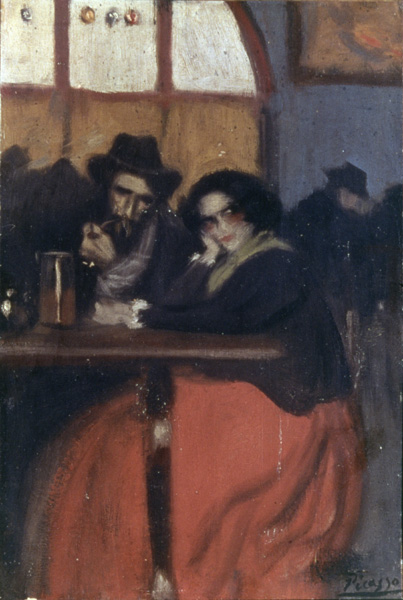 中でも目を引くのはやはりパブロ・ピカソ(1881−1973)。ピカソは、スペインの南に位置するマラガという港町で万博の翌年に生まれるが、やがてバルセロナにやってくる。アーティスト達が集ったのは、クワトロ・ガッツ(4匹の猫)と呼ばれたカフェで、そこでは展覧会はもちろん詩の朗読や様々なパフーマンスが繰り広げられた。18歳にしてその常連だったピカソがその他の常連アーティストを描いた水彩画やカフェの様子を描いた油彩画が紹介されている。ピカソはやがてパリに移るが、このバルセロナ生活はピカソに様々な影響を与えたと思われる。例えば、ピカソは「青の時代」と呼ばれる憂愁に満ちた貧民の生活をパリで描くが、本展では、その社会的矛盾の描写がバルセロナの画家達に共通したものであるとし、ピカソに先立つ世代でジプシーを描いたバルセロナの画家イジドレ・ノネル(Isidre Nonell1873−1911)ら社会派のアーティストを紹介している。