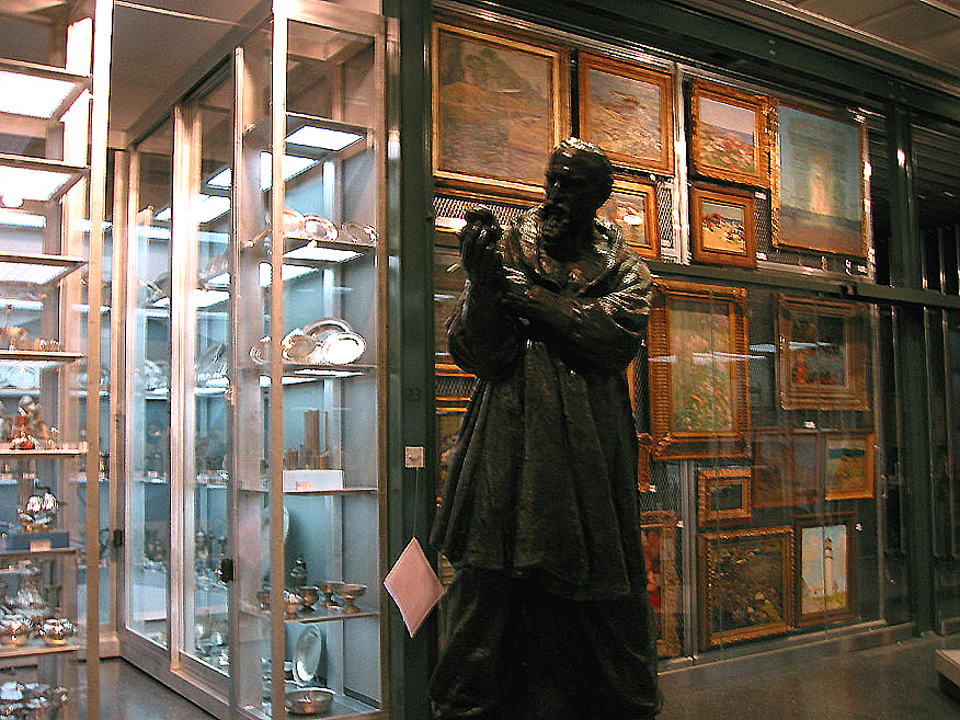 このスタディーセンター、実はガラスやシルバーなどの装飾品、家具も含め絵画、彫刻の貯蔵倉庫を兼ねている。コンピューターで作品検索が非常に容易な時代とはいえ、やはりその場で現物を見ることができるのは貴重な体験だろう。貯蔵されているそれぞれの作品にはアクセス番号が付加されており、すぐそばにあるコンピューターで作品イメージが再現でき、情報も読み取れる。センターのデザインを担当したマシュー・ヨコボスキー氏によると苦労したのは様々な素材が収まる収納ケースの照明だと言う。各ケースにはより細部を観察できるよう、携帯用スッポットライトが常備されている。1500点もの作品が収まる収納倉庫が、洗練された見て学習できる展示スペースになった。しかもそれが専門家だけでなく、一般の人たちにも開かれる。