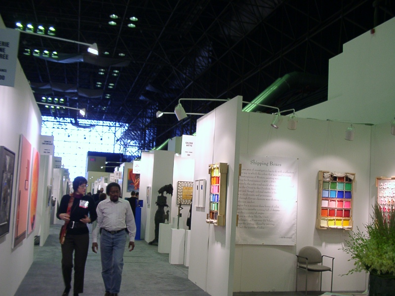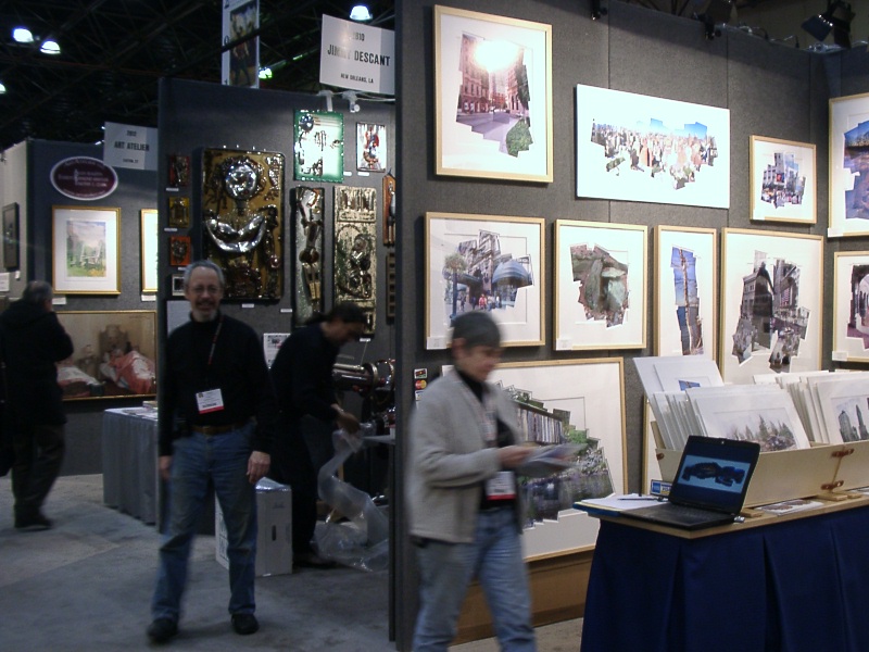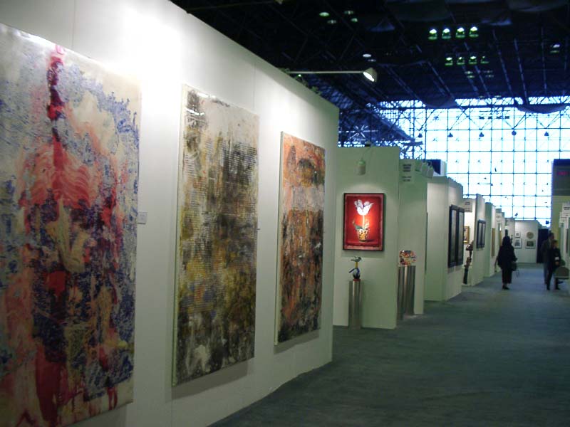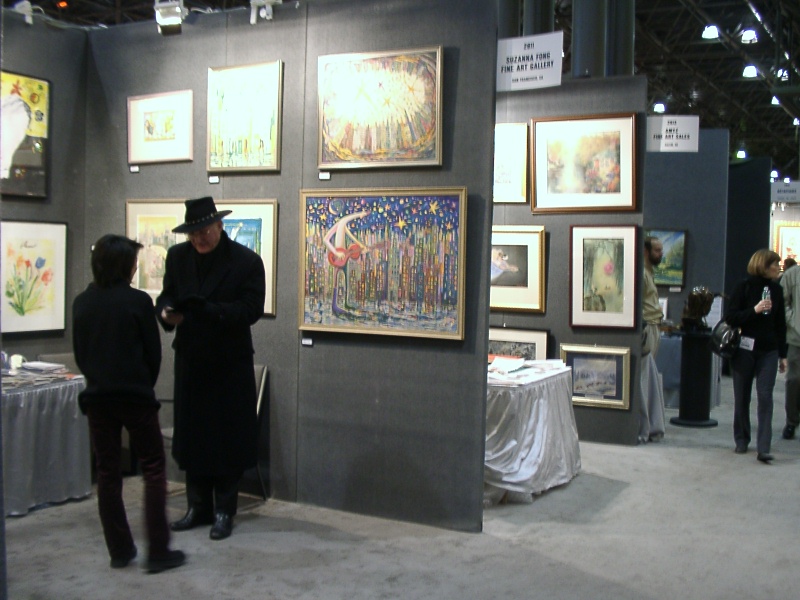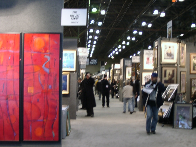 ArtExpoは2月最後の週末から3月に掛けて開かれた。所謂コマーシャルアートを扱うこのアートフェアは個人のアーティスト、またはプリント出版社が中心だ。広大な展示会場に3m四方から5m、10m位までのスペースをあてがわれた出展者達が並ぶ。全く様々な作品が並ぶのでカラフルで纏まりがなく、目が回る。来客はそれぞれ自分の家に飾れる作品を探しに来る。インテリアデザイナー、オフィスなどに飾る作品の担当者なども来る。値段が$100前後のものからあり、ショッピング気分で来る人が多いのではないだろうか。