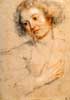 Black and red chalk, heightened with white; ey es, eyelashes, and left